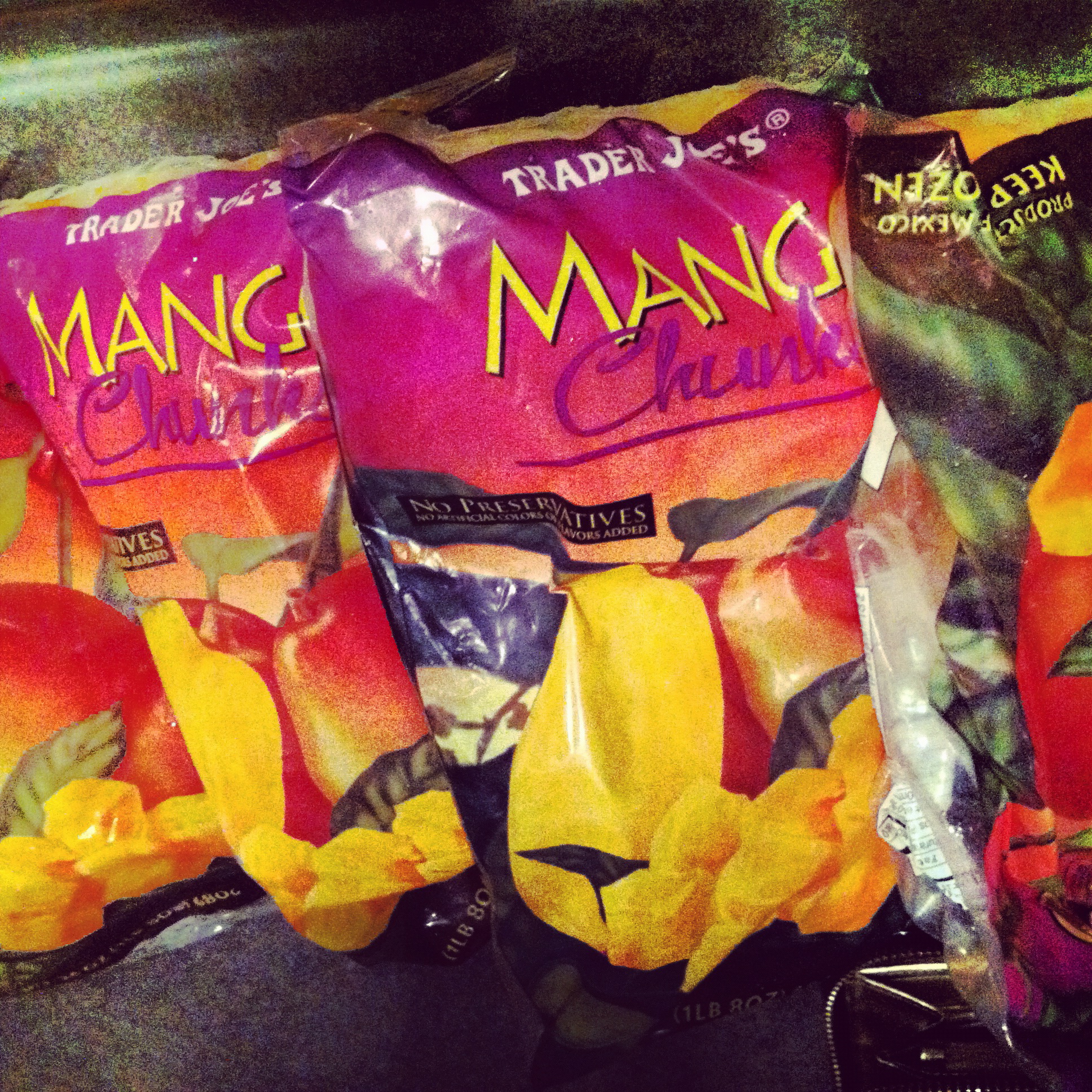 Also- unless you are buying Trader Joe’s Frozen Mango chunks…. [they are approximately three bucks for a huge bag of perfectly frozen mango which I buy in mass amounts like a hoarder]….I suggest that you freeze your own on sale/ seasonal fruit. The trick to freezing strawberries? Dry them and slice them up; lay them out on a cookie sheet and place in the freezer for a few hours. They will freeze up individually and not in huge clumps as they would when frozen in a bag.