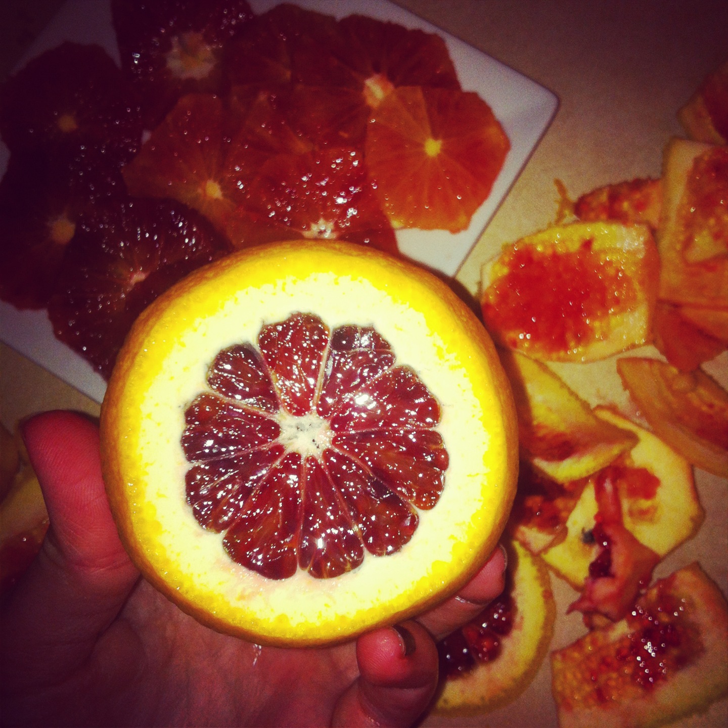 We were having breakfast one morning, and I can vividly remember peeling my first blood orange; I was surprised by the deep red color and unknowingly thought “ewww, I got a bad one”.