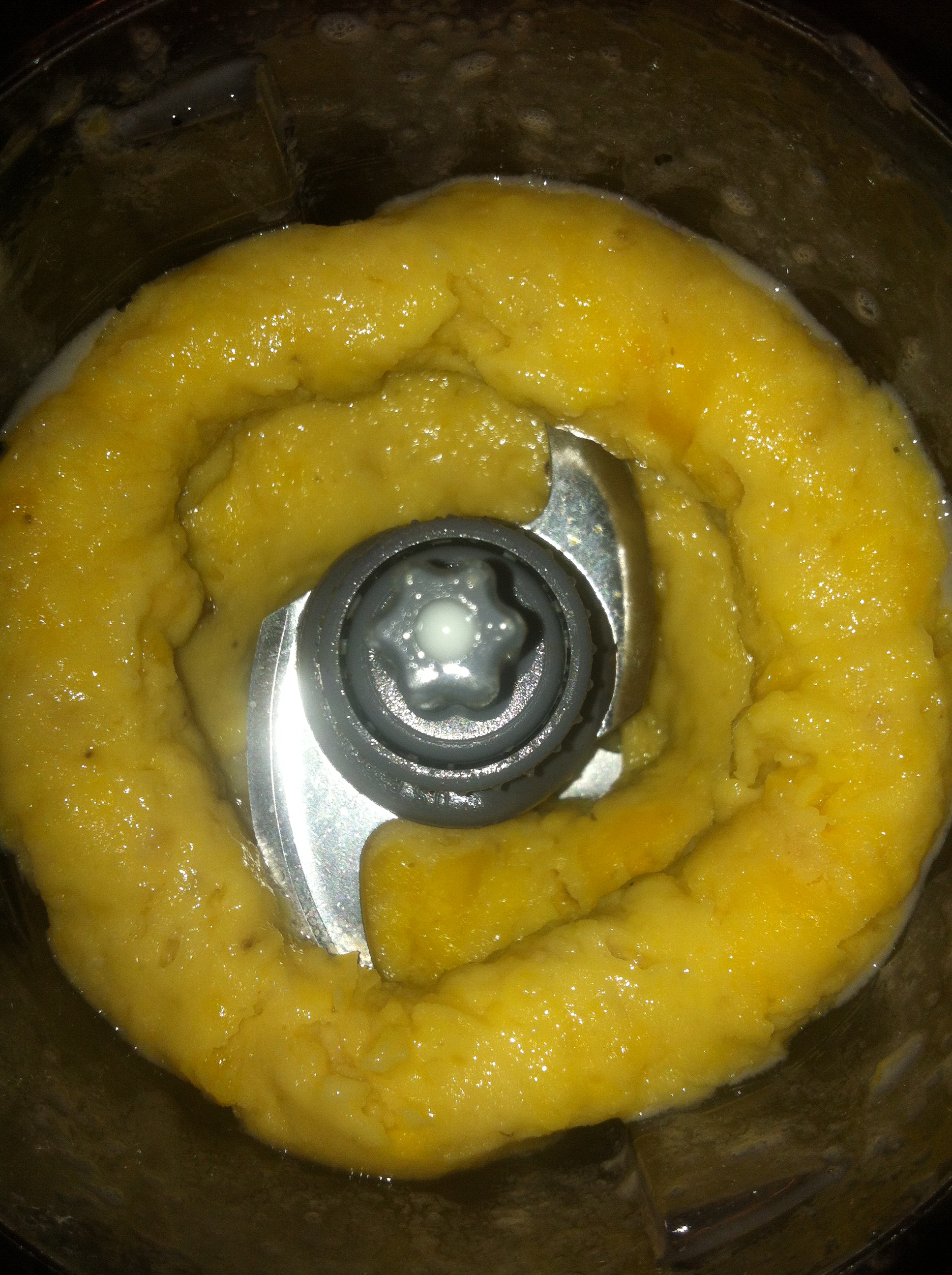 To make the soft serve, I blended about a cup of frozen mango chunks, half a frozen banana, and about a 1/4 of a cup of milk. Blend until you reach the consistency of a soft frozen sorbet. I then crushed up two thin mint cookies and mixed it into the soft serve. Yum.