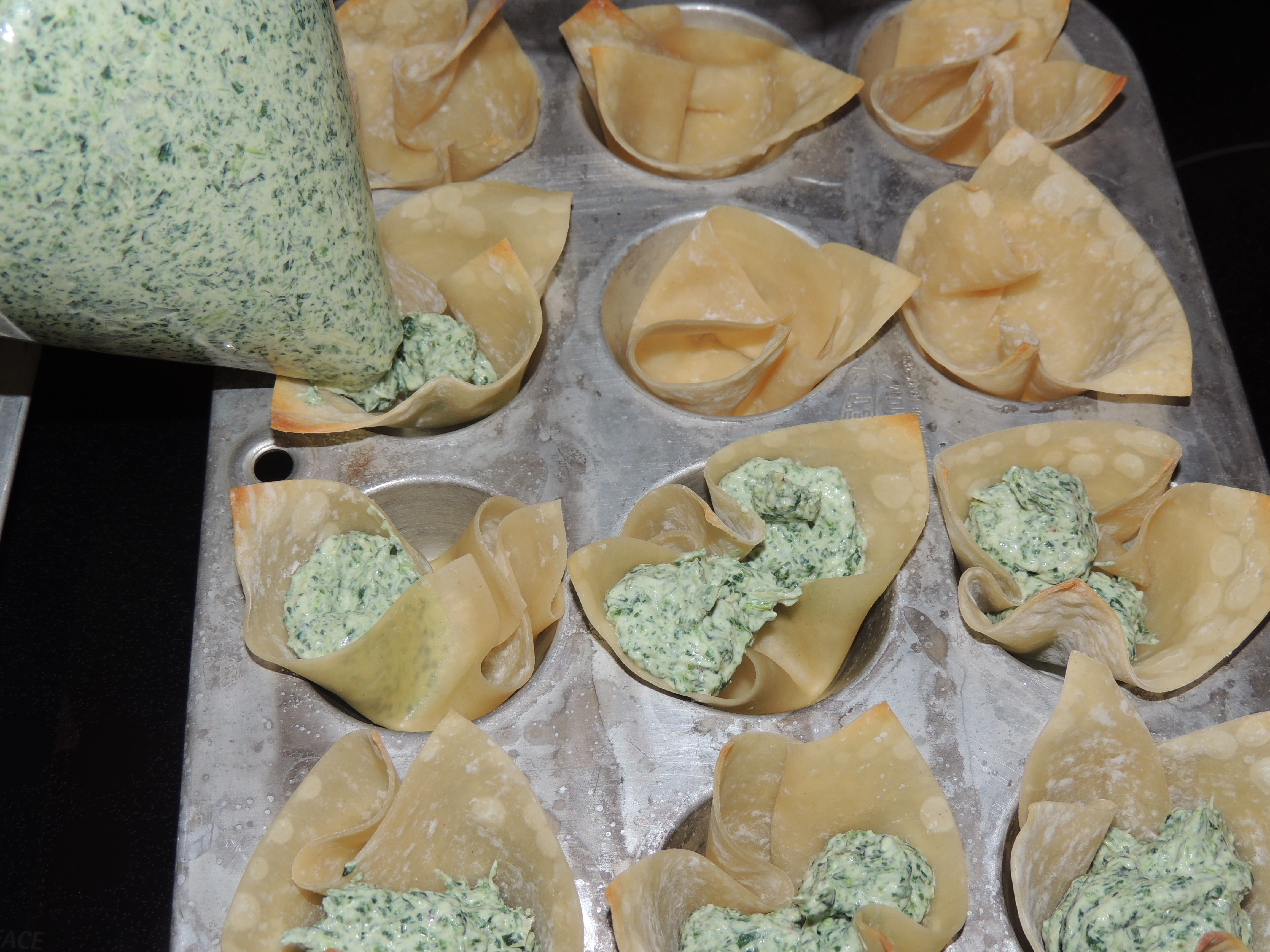 Solution: Dip in a Cup. Spinach artichoke dip in a homemade wonton cup, to be exact. These are something that I came up with in my head when I was craving spinach artichoke dip & chips- but not all the fat and calories that come along with lack of will power.