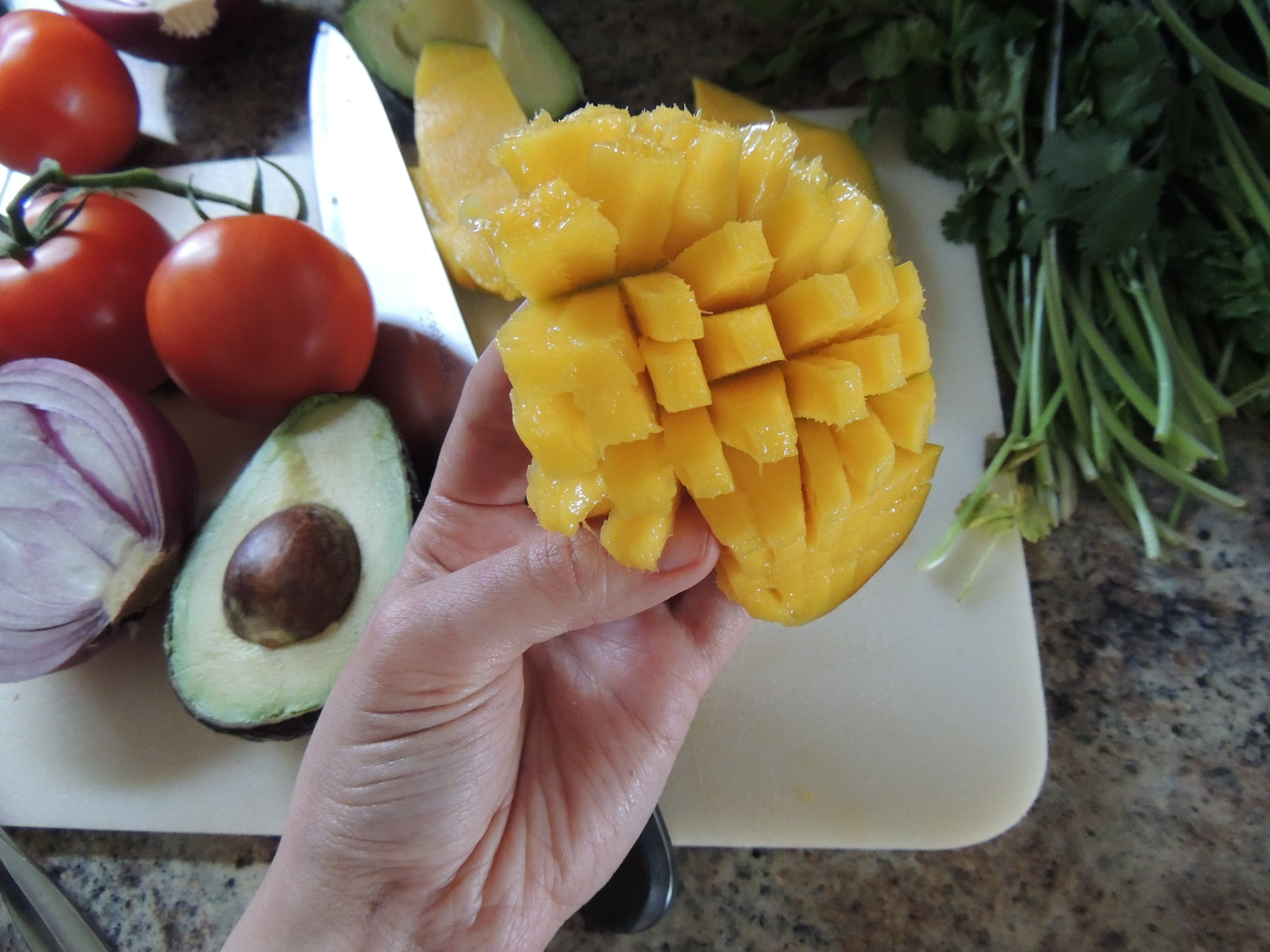Chop and dice all of your ingredients up. Try not to eat half of the mango in the process. Sorry, I’m still obsessed.