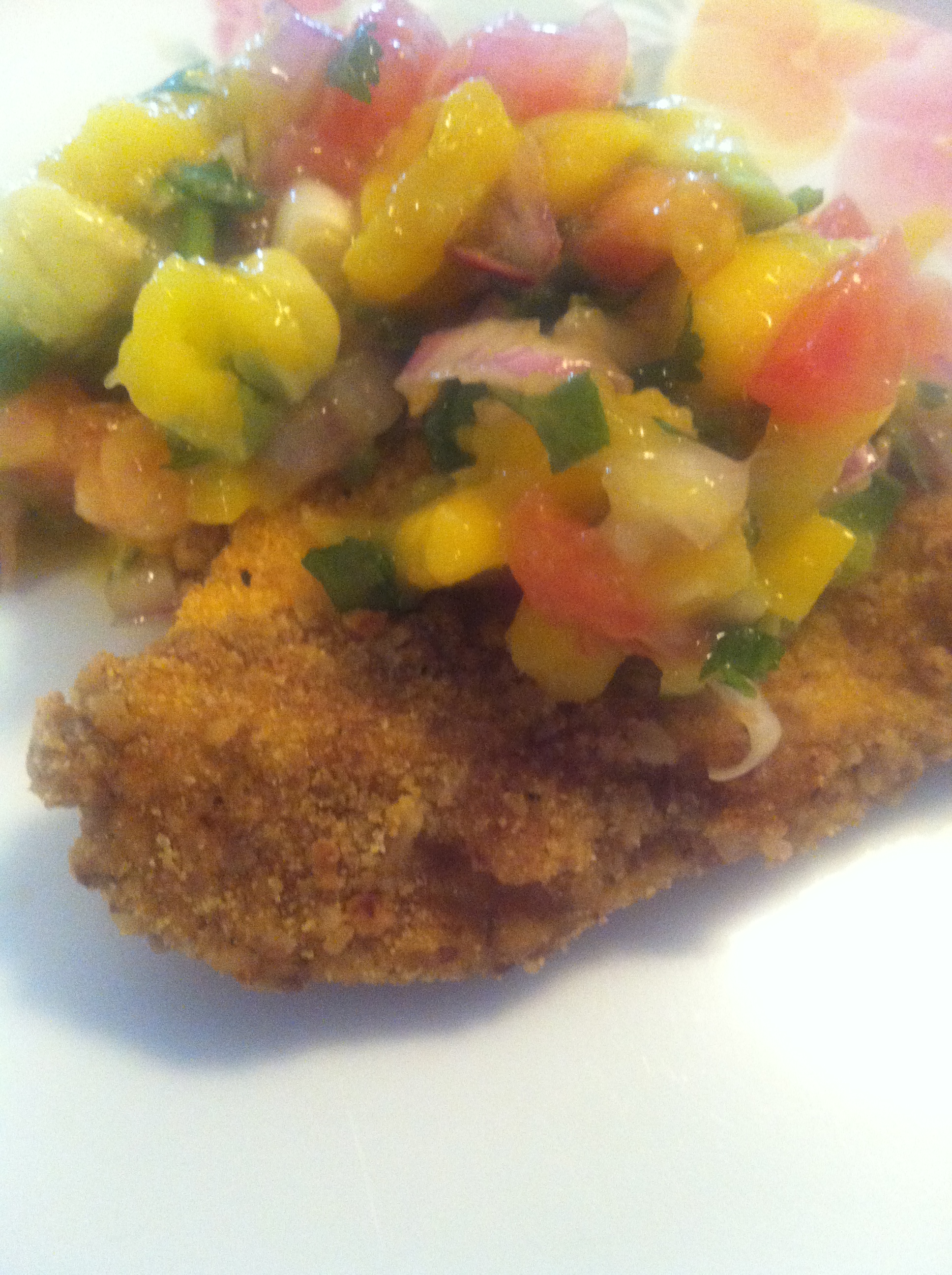 I made this salsa for dinner with my mom and dad [hi!] and we used it on top of some pecan crusted chicken. [another recipe I need to share, ASAP]